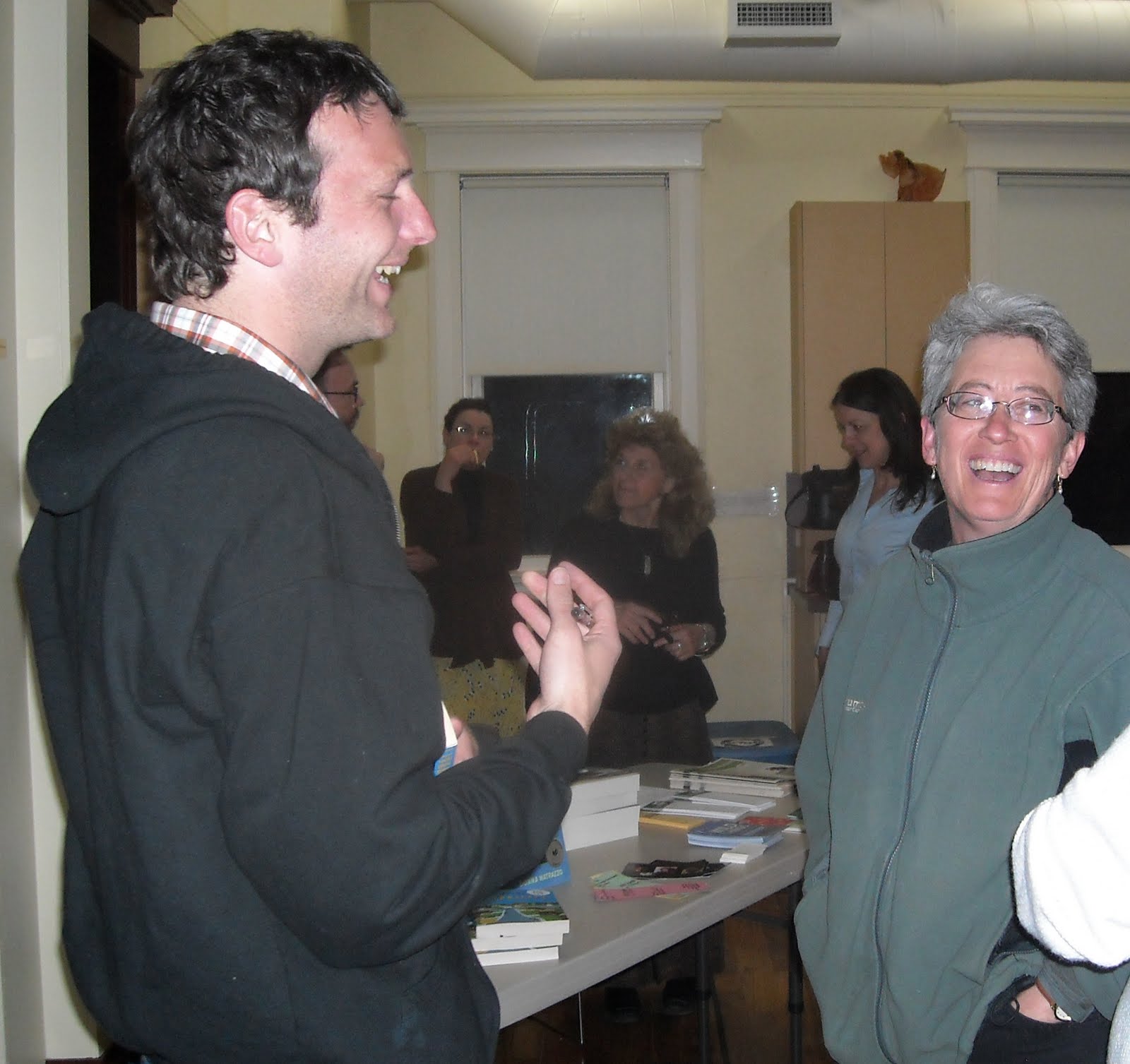 John Kroger, Donna Matrazzo, and Jon Raymond visited Eastern Oregon last week as part of the Oregon Book Awards Author Tour. Wednesday, May 12th, the authors read at Fishtrap’s Coffin House in Enterprise. Thursday morning, Donna Matrazzo visited a journalism class at Eastern Oregon Univerity in La Grande and talked about her career as a freelance writer and her book Wild Things. On Thursday evening, there was a special screening of the movie Wendy and Lucy on the Eastern Oregon University campus, followed by a Q&A with Jon Raymond. The final tour event was Friday night at the Crossroads Art Center where the authors spoke as part of the Writer’s Guild of Eastern Oregon‘s Second Friday Literary Night. Thanks to all our tour partners and the wonderful audiences of Eastern Oregon!