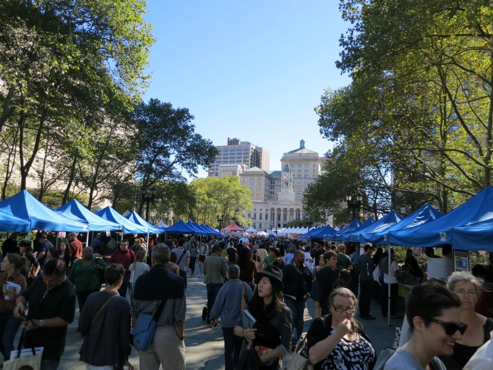 Brooklyn Book Festival on Sunday, September 23 this year. As I walked past lines of people snaking around buildings and then pressed through the crowds clutching tote bags, a woman on an outdoor stage announced, “God must be literary, because he blessed us with good weather.”