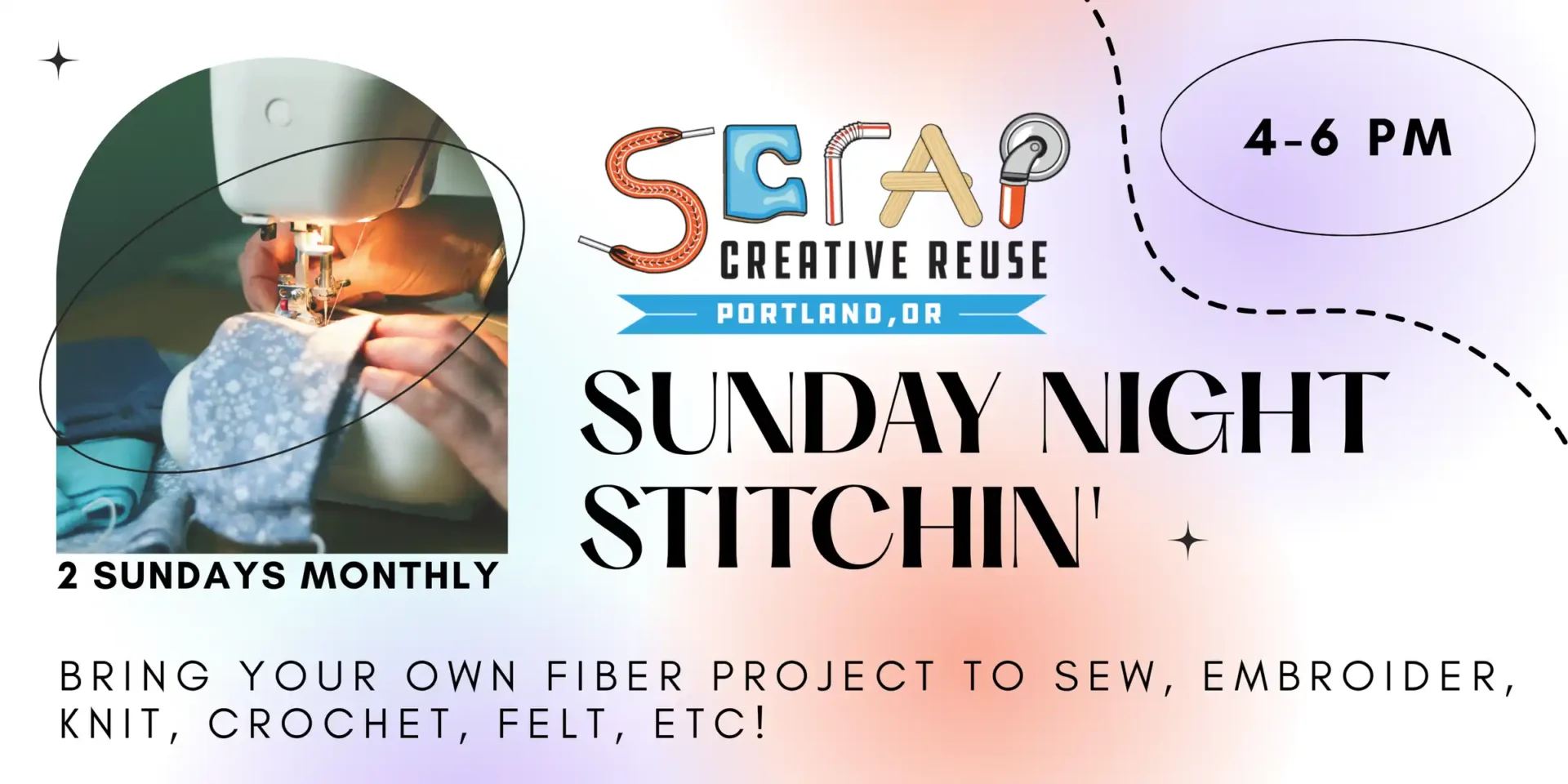 Join SCRAP for their twice monthly—usually every other Sunday evening— in their SCRAP Education Studio for Sunday Night Stitchin’, a fiber club for sewists, knitters, and crocheters! You bring your project; we’ll provide basic tools and immaculate vibes. ✨ Come and create community with other lovely fiber artists!