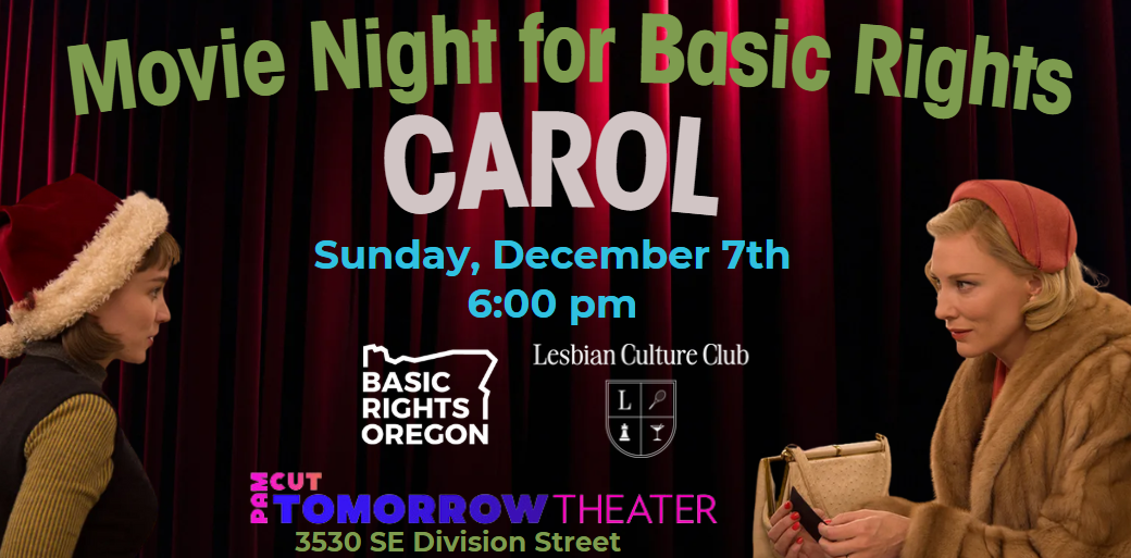 Movie Night for Basic Rights: Carol (Basic Rights Oregon & Lesbian Culture Club)