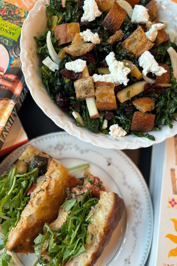 Our delicious winter salad features fennel, apple, goat cheese, and beets over a bed of kale and is finished with an orange vinaigrette. Our seasonal veggie sandwich features eggplant, roasted red pepper, herbs, balsamic mayo, and arugula on fresh focaccia from our friends at Good Dough.