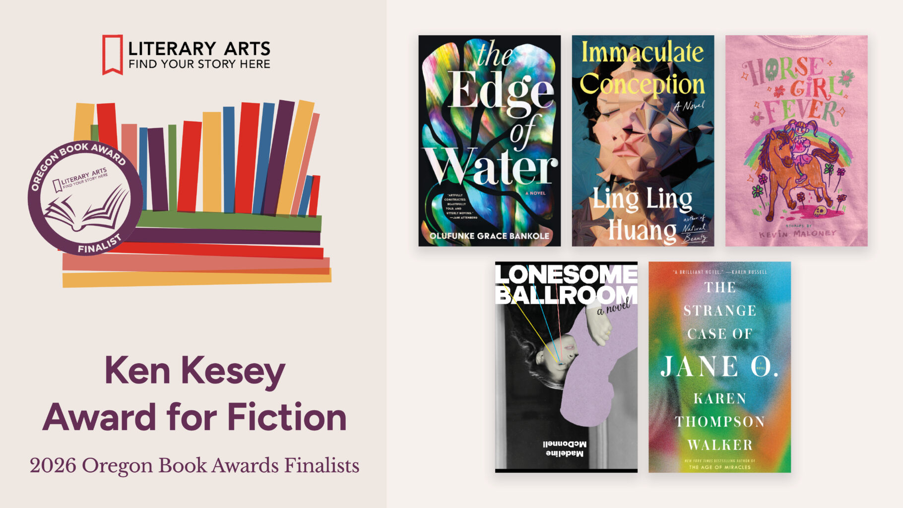 Winners will be announced live at the 2026 Oregon Book Awards Ceremony, hosted by Kimberly King Parsons, at Portland Center Stage at The Armory on Monday, April 20, 2026. The event will also honor our 2026 Oregon Literary Fellowship recipients