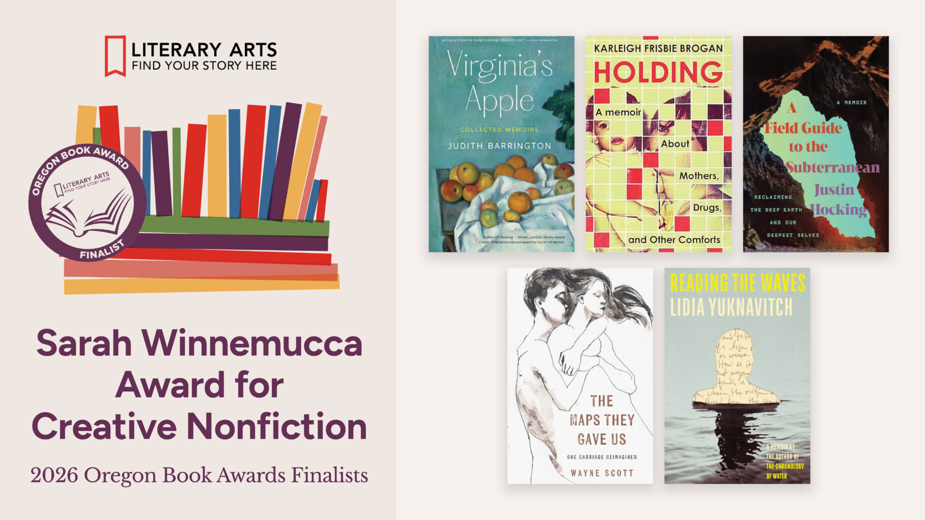 Literary Arts is thrilled to announce this year’s Oregon Book Awards finalists and Special Award recipient. Thirty-five titles from Oregonians across seven genre categories were chosen as finalists by panels of out-of-state judges, from a total of 200 submitted titles.